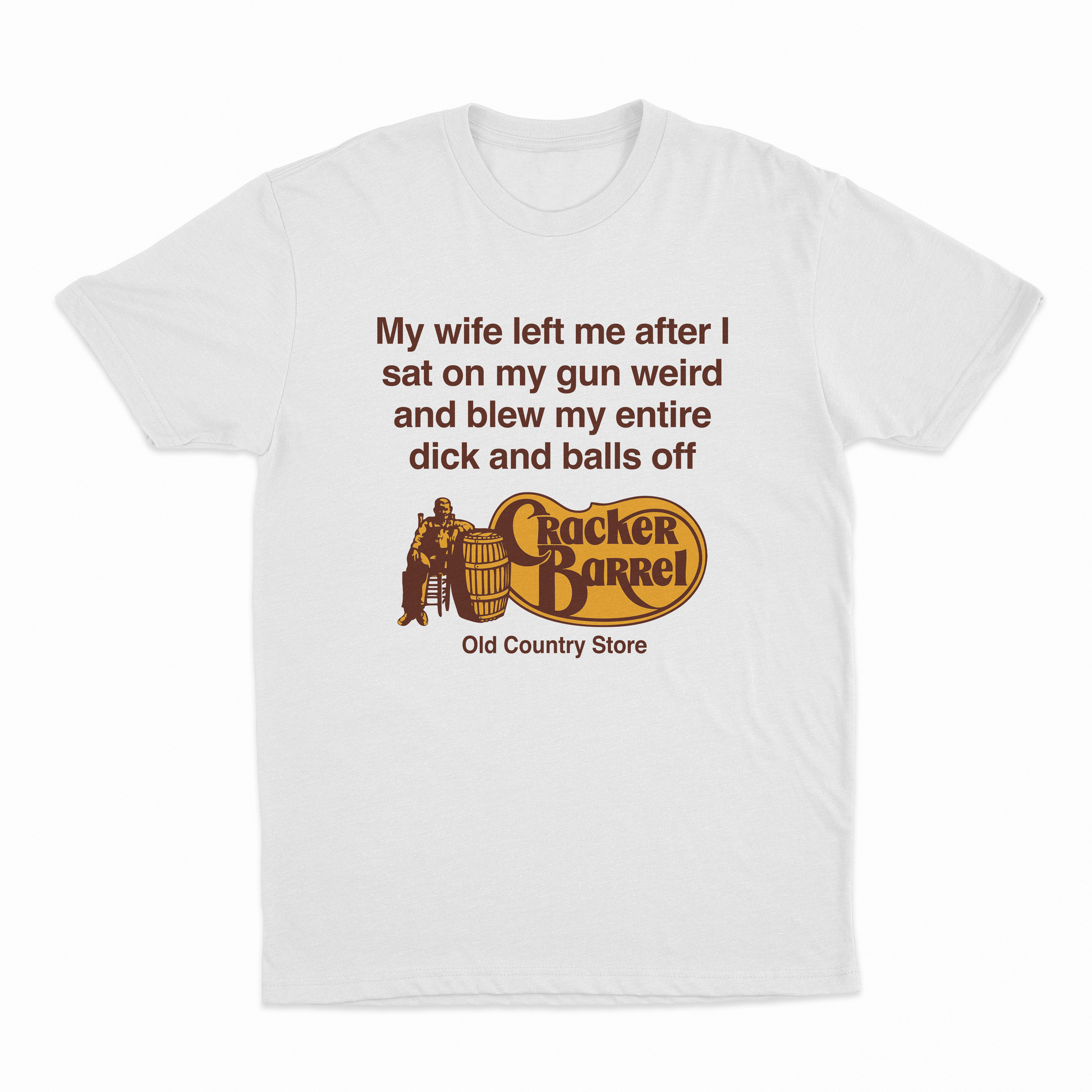 My Wife Left Me After I Sat On My Gun Weird And Blew My Entire Dick And Balls Off At The Old Country Store T-Shirt
