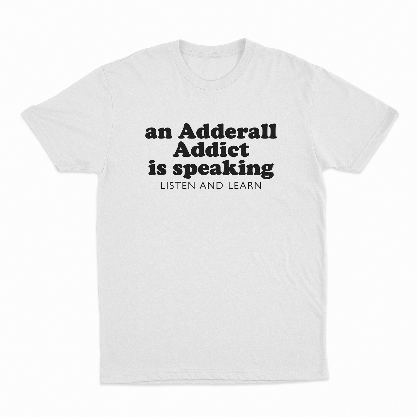 An Adderall Addict Is Speaking Listen And Learn T-Shirt